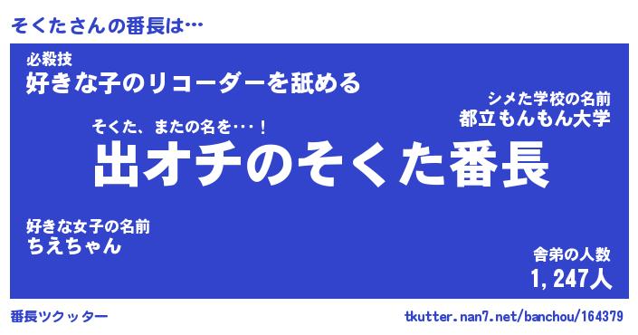 | ピコ太郎風あだ名 | 『ソコ十郎』『ピソ二郎』『ソク一郎』 |