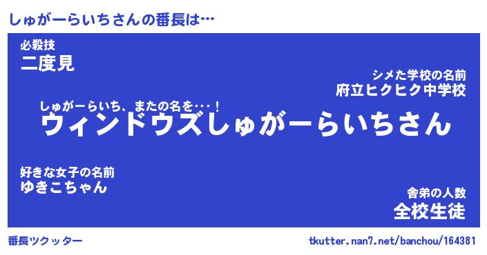 | 伝説のあだ名 | 『伝説のスナイパーしゅがーらいち』 |