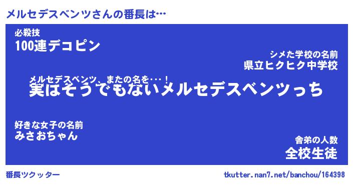 | 料理風あだ名 | 『ネギたっぷりメルセデスベンツの南蛮漬け』 |