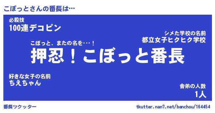 | 伝説のあだ名 | 『封印されしスナイパーこぼっと』 |
