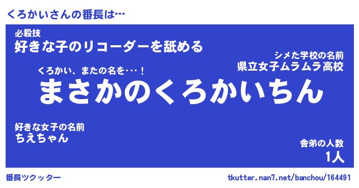 | 意味不明あだ名 | 『ペロリンくろかい』『永久保存くろかい』 |