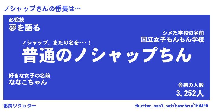 | ファンタジー風あだ名 | 『ノシフェル』『エターナルノシャップー』 |
