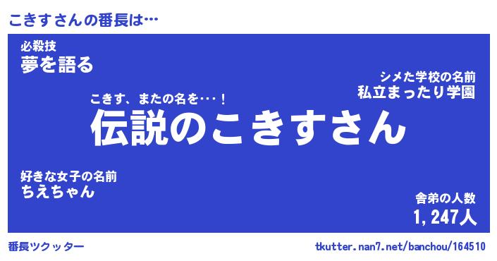 | 肩書あだ名 | 『こきす社長』『こきす総理大臣』 |