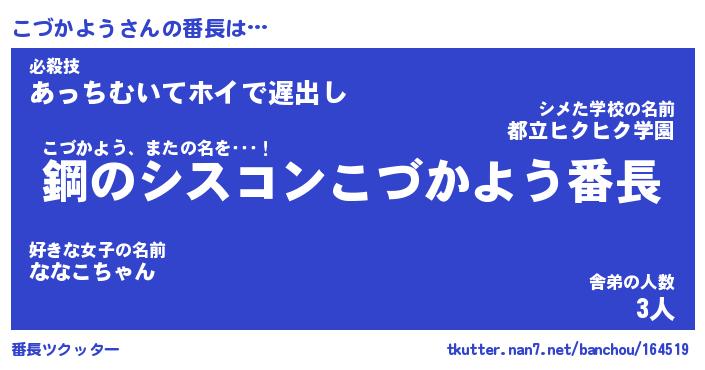 | ファンタジー風あだ名 | 『コヅフェル』『エターナルコヅカヨウー』 |