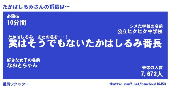| 伝説のあだ名 | 『封印されしスナイパーたかはしるみ』 |