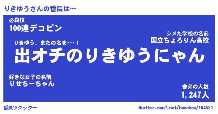 | 意味不明あだ名 | 『ペロリンりきゆう』『永久保存りきゆう』 |