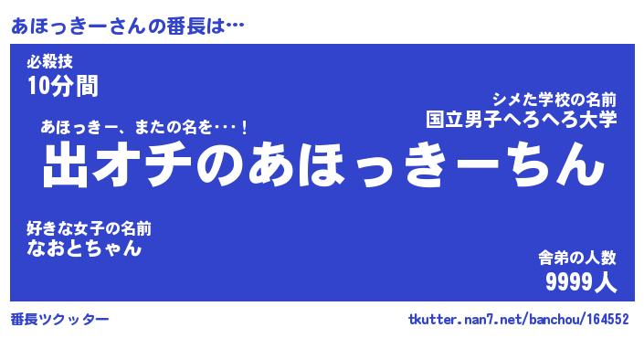 | ヘコむあだ名 | 『あほにゅー』『牛乳』『あほを』 |