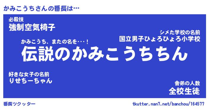 | 伝説のあだ名 | 『伝説のスナイパーかみこうち』 |