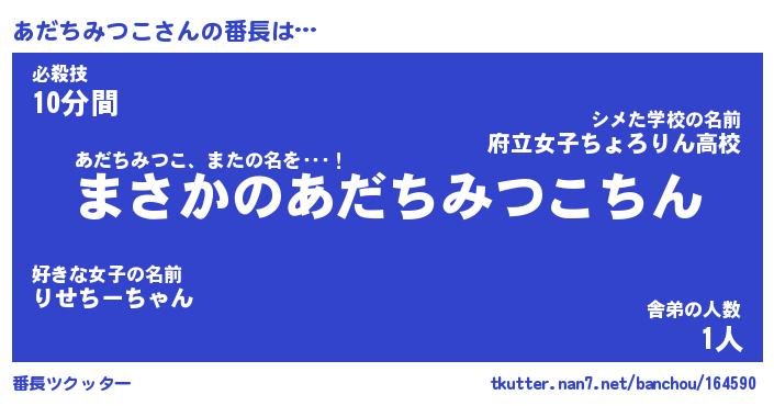 | 肩書あだ名 | 『あだちみつこ社長令嬢』 |