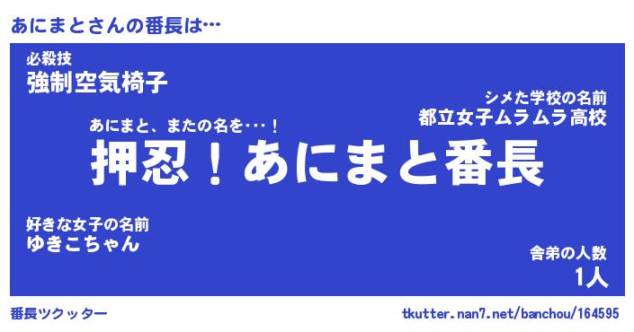 | 2回繰り返すあだ名 | 『あにあに』『ああにに』『うねうね』 |