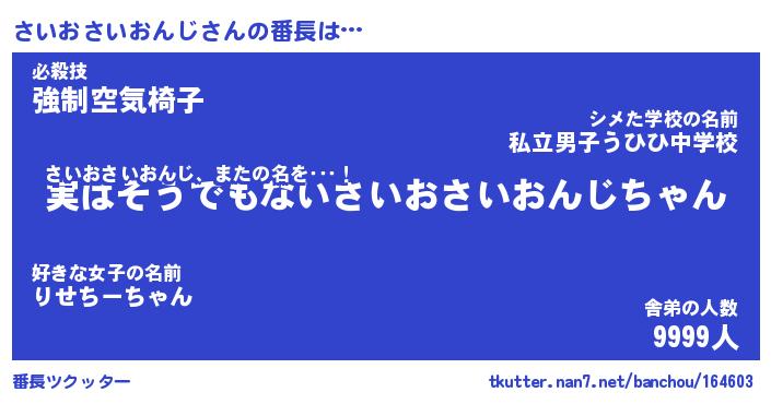 | 肩書あだ名 | 『さいおさいおんじ店長』 |