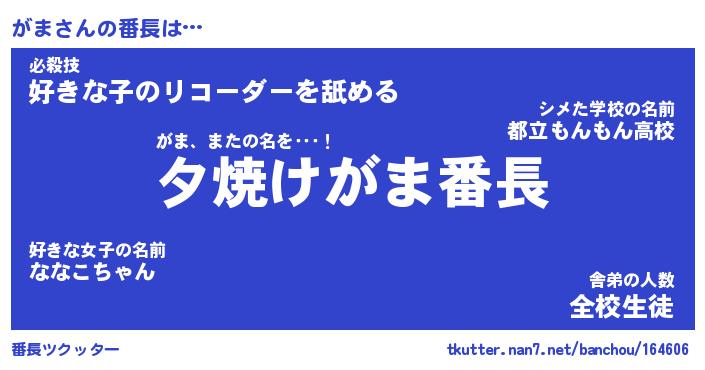 | ヒーロー風カッコイイあだ名 | 『スーパーガマ』『ウルトラがまマン』 |