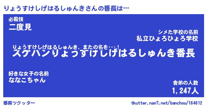 | 意味不明あだ名 | 『ペロリンりょうすけしげはるしゅんき』 |