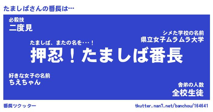 | ヒーロー風カッコイイあだ名 | 『スーパータマシバ』『暗黒騎士タマ』 |