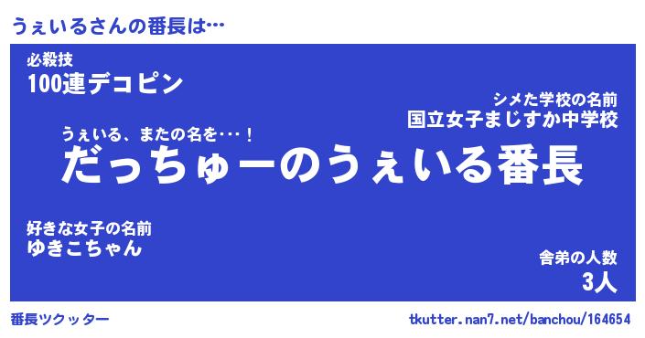 | 意味不明あだ名 | 『ペロリンうぇいる』『永久保存うぇいる』 |