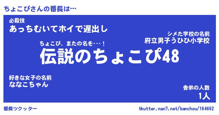 | ヒーロー風カッコイイあだ名 | 『スーパーチョコピ』『天弓騎士チョ』 |