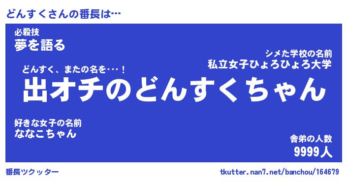 | 男性向けラノベタイトル風あだ名 | 『どんすくの憂鬱』 |