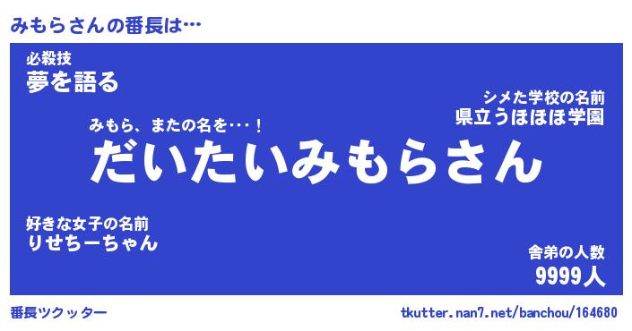 | ヘコむあだ名 | 『みももー』『つくし』『みも太郎』 |