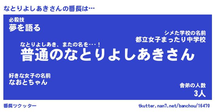 | 肩書あだ名 | 『なとりよしあき御曹司』 |