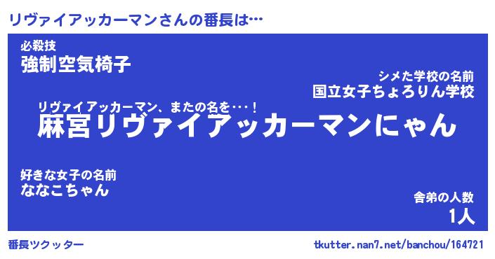 | ヘコむあだ名 | 『リヴもー』『つくし』『リヴお』 |