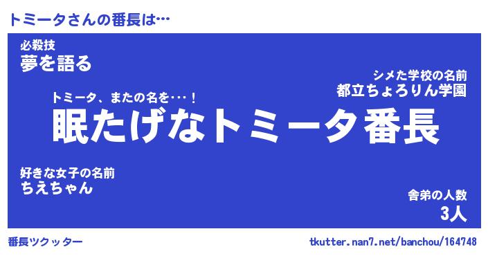 | ファンタジー風あだ名 | 『トミフェル』『エターナルトミーター』 |