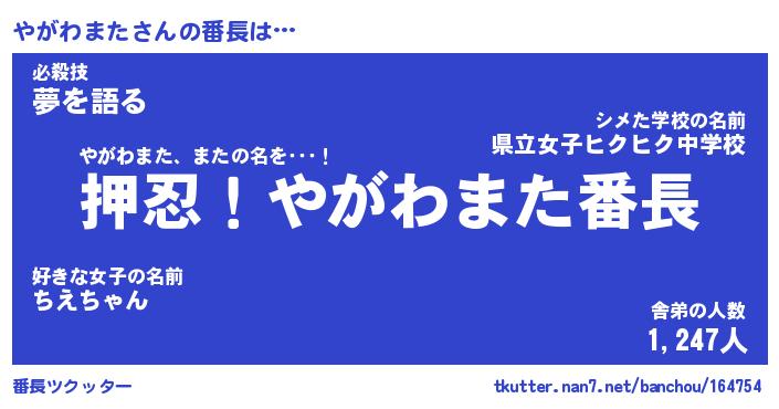 | ファンタジー風あだ名 | 『ヤガフェル』『エターナルヤガワマター』 |