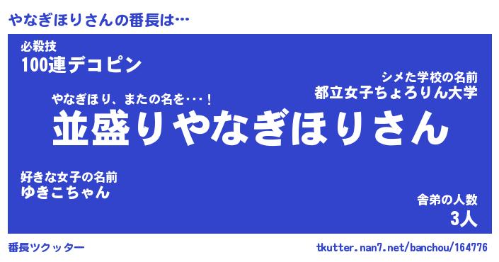 | 2回繰り返すあだ名 | 『やなやな』『ややなな』『おらおら』 |