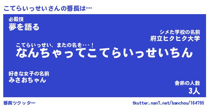 | 男性向けラノベタイトル風あだ名 | 『こてらいっせいの憂鬱』 |
