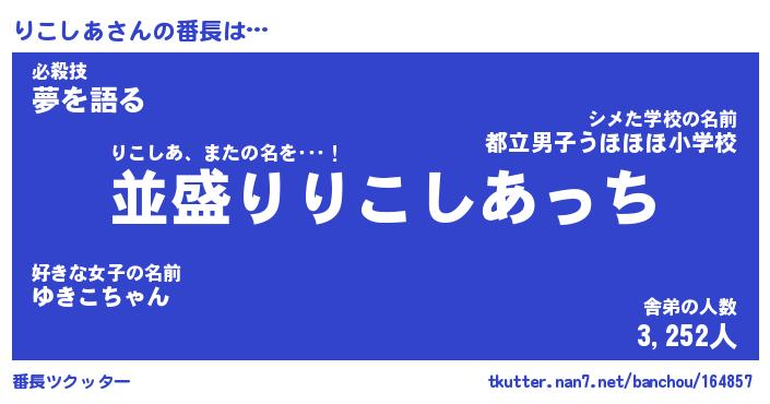 | 肩書あだ名 | 『りこしあ御曹司』『りこしあ総理大臣』 |