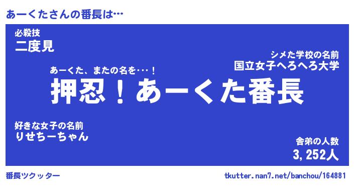| 意味不明あだ名 | 『ペロリンあーくた』『永久保存あーくた』 |