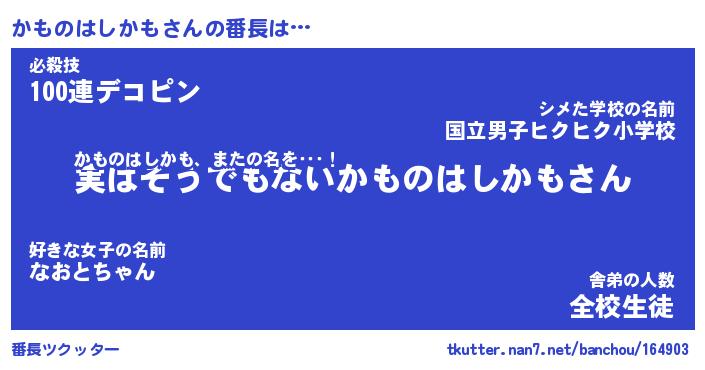 | 肩書あだ名 | 『かものはしかも店長』 |