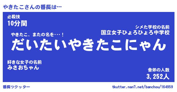 | 男性向けラノベタイトル風あだ名 | 『やきたこの憂鬱』 |