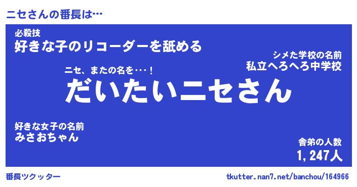 | ヒーロー風カッコイイあだ名 | 『スーパーニセ』『ウルトラニセマン』 |