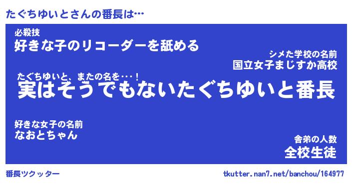| 伝説のあだ名 | 『封印されしスナイパーたぐちゆいと』 |