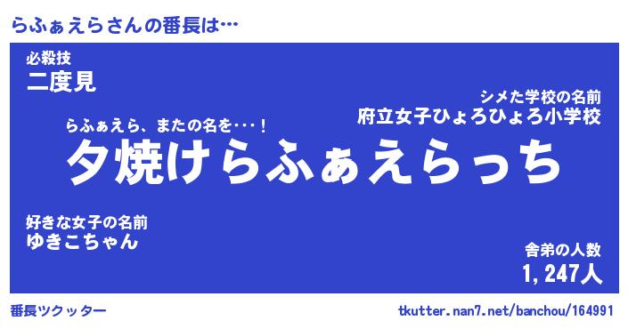 | ヘコむあだ名 | 『らふもー』『レバニラ』『らふ太郎』 |