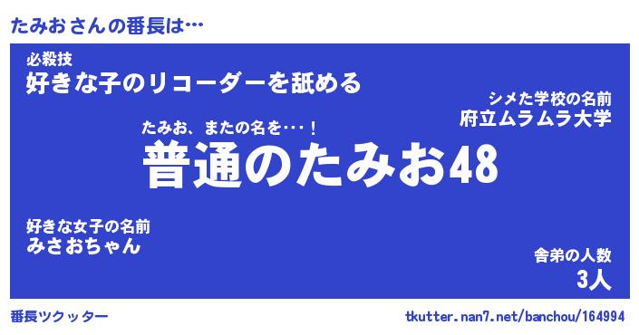 | 意味不明あだ名 | 『ペロリンたみお』『たみおフォーエバー』 |