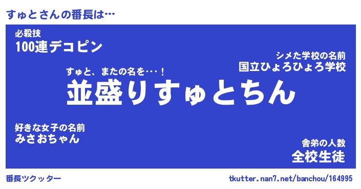 | 男性向けラノベタイトル風あだ名 | 『すゅとの憂鬱』 |