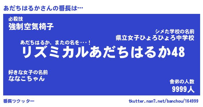 | 肩書あだ名 | 『あだちはるか店長』『あだちはるか塾長』 |