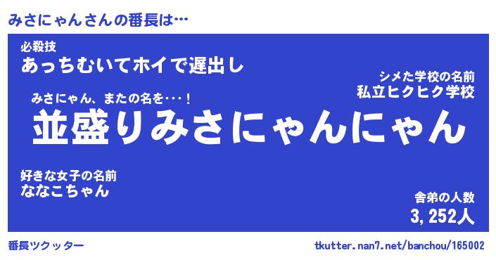 | 肩書あだ名 | 『みさにゃん社長令嬢』『みさにゃん教頭』 |