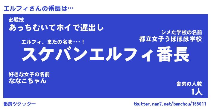 | 肩書あだ名 | 『エルフィ店長』『エルフィ大統領』 |