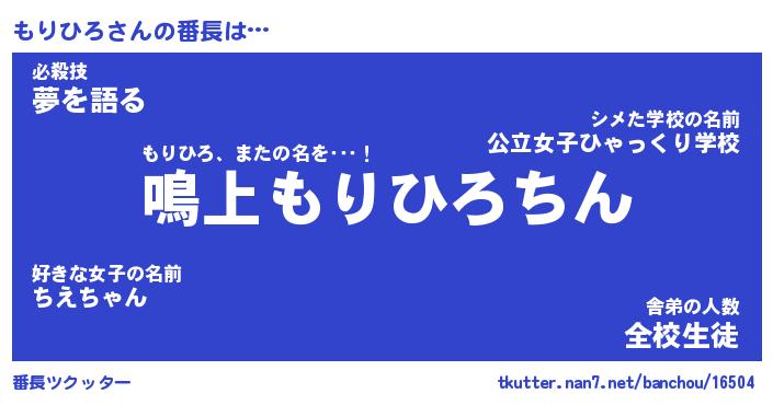 | 肩書あだ名 | 『もりひろ御曹司』『もりひろ国家主席』 |