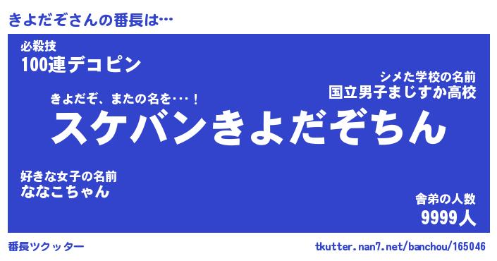 | 意味不明あだ名 | 『ペロリンきよだぞ』『永久保存きよだぞ』 |