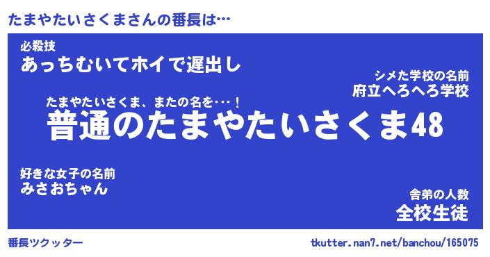 | 肩書あだ名 | 『たまやたいさくま御曹司』 |