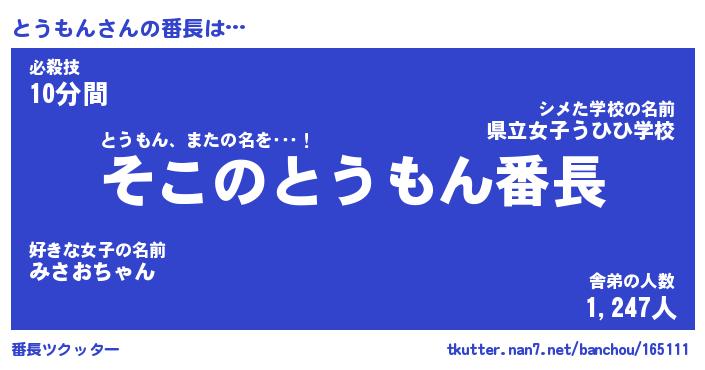 | 男性向けラノベタイトル風あだ名 | 『とうもんの憂鬱』 |