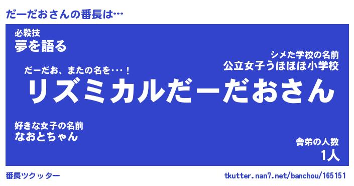 | 意味不明あだ名 | 『ペロリンだーだお』『永久保存だーだお』 |