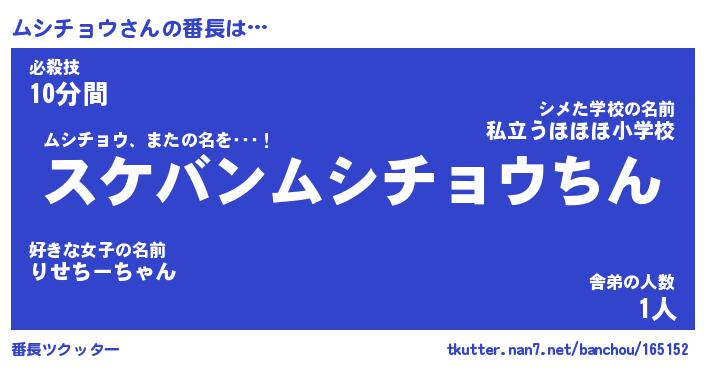 | ヒーロー風カッコイイあだ名 | 『スーパームシチョウ』『炎刃騎士ムシ』 |