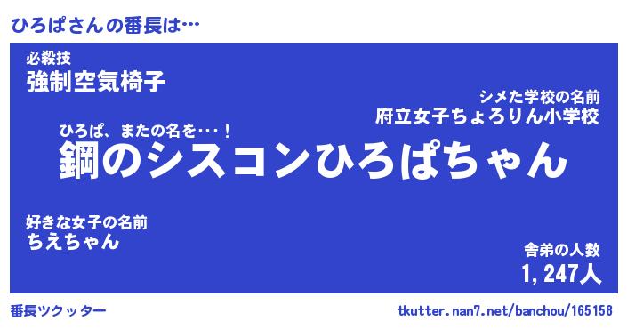 | ポケモン風あだ名 | 『ヒロチュウ』『ヒロパダネ』 |
