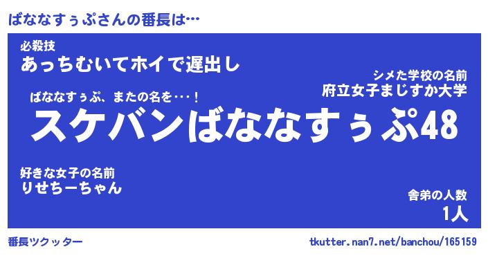 | ヘコむあだ名 | 『ばなにー』『酢こんぶ』『ばなお』 |