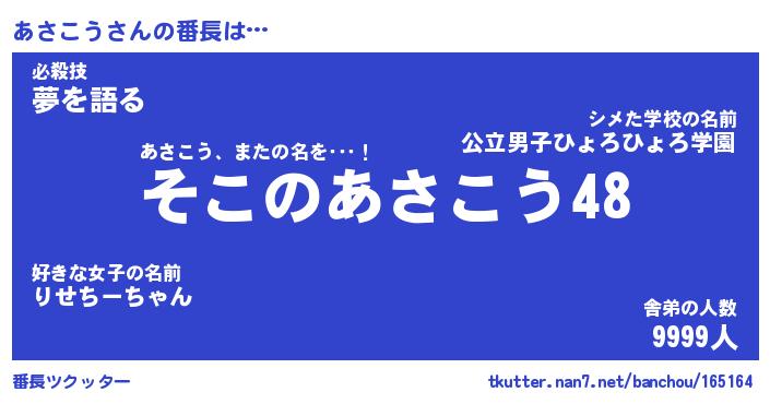 | ヒーロー風カッコイイあだ名 | 『スーパーアサコウ』『銀牙騎士アサ』 |