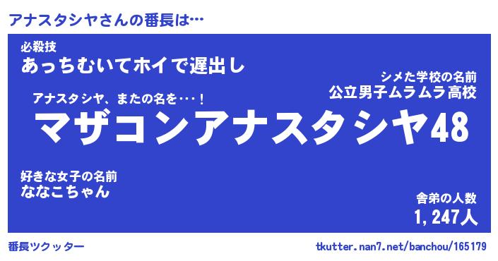 | ヒーロー風カッコイイあだ名 | 『スーパーアナスタシヤ』『銀牙騎士アナ』 |